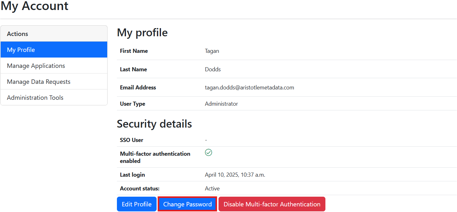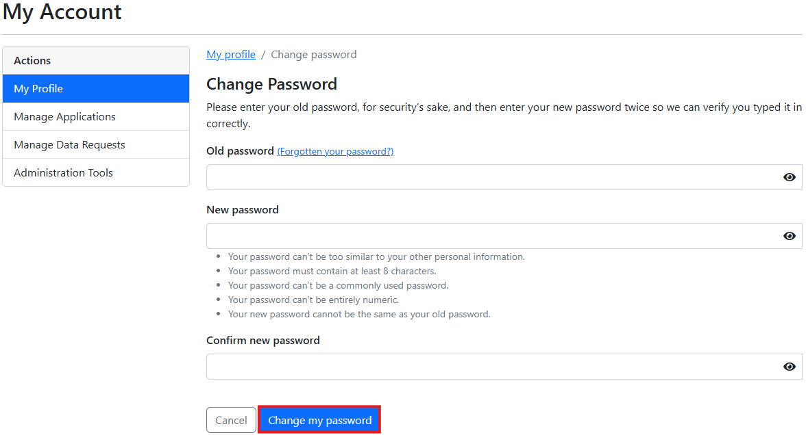 6. Select 'Change my password'. An email confirming you made this change will be sent to your account's associated email address (no action is required, as you did make this change).