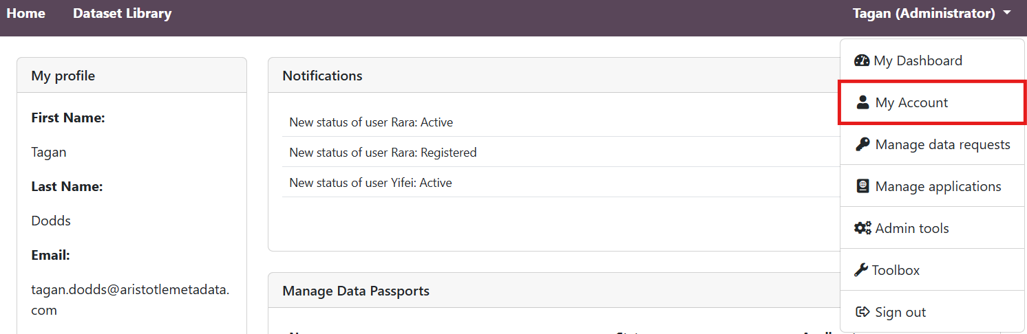 1. Select 'My Account' from your username dropdown.
